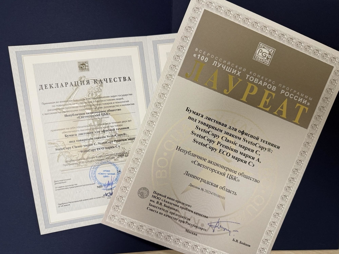Офисная бумага SvetoCopy снова лауреат конкурсной программы «100 лучших товаров России»