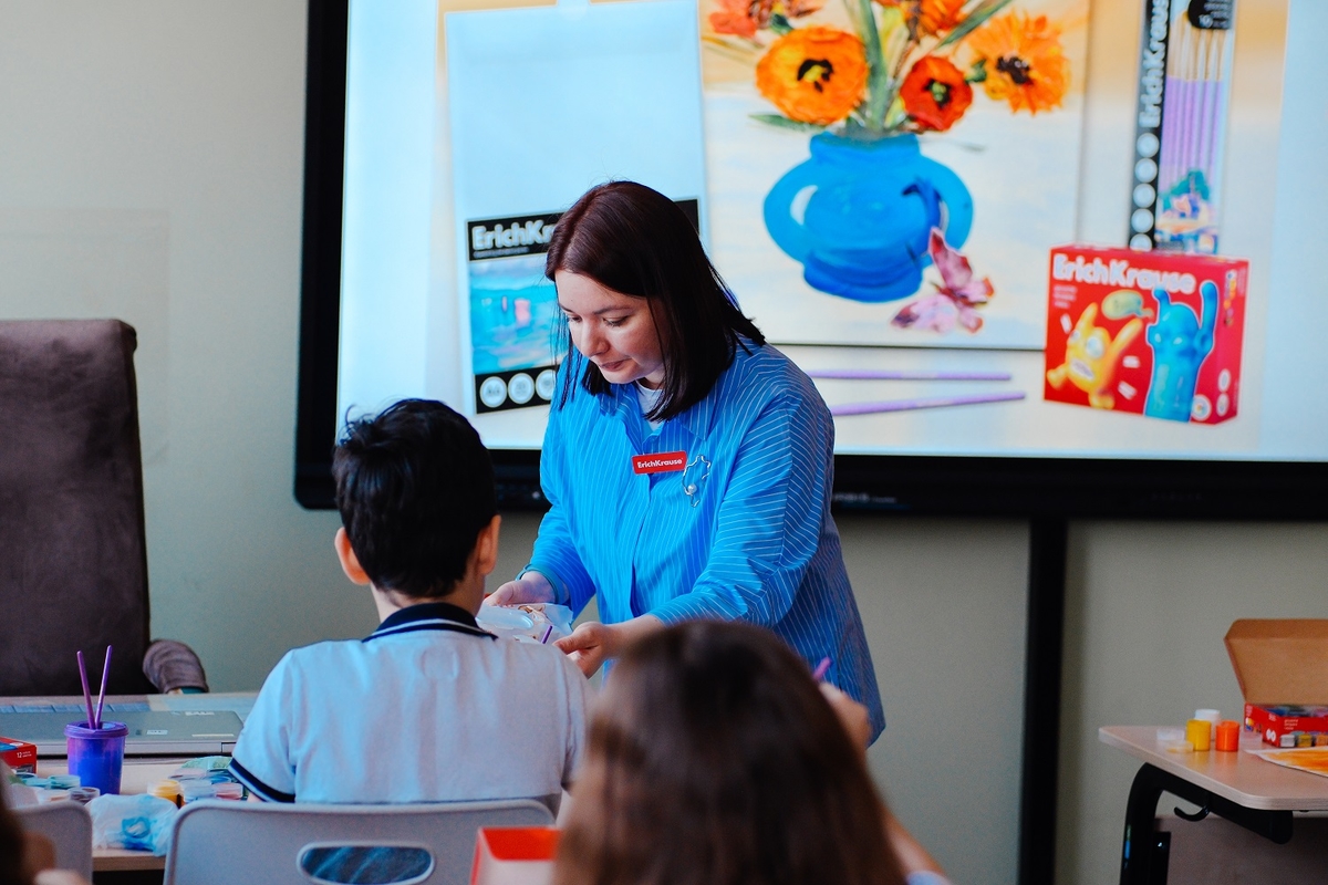 Такая площадка подошла и для яркого художественного мастер-класса «Ваза с цветами» ErichKrause. Дети освоили методику с использованием гуаши «Весёлые друзья» (Jolly Friends), кистей и бумаги из коллекции «Дух искусства» (Art Spirit). Материалы помогли добиться впечатляющих результатов, а родители, педагоги и школьники отметили качество продукции и уровень организации практикума.