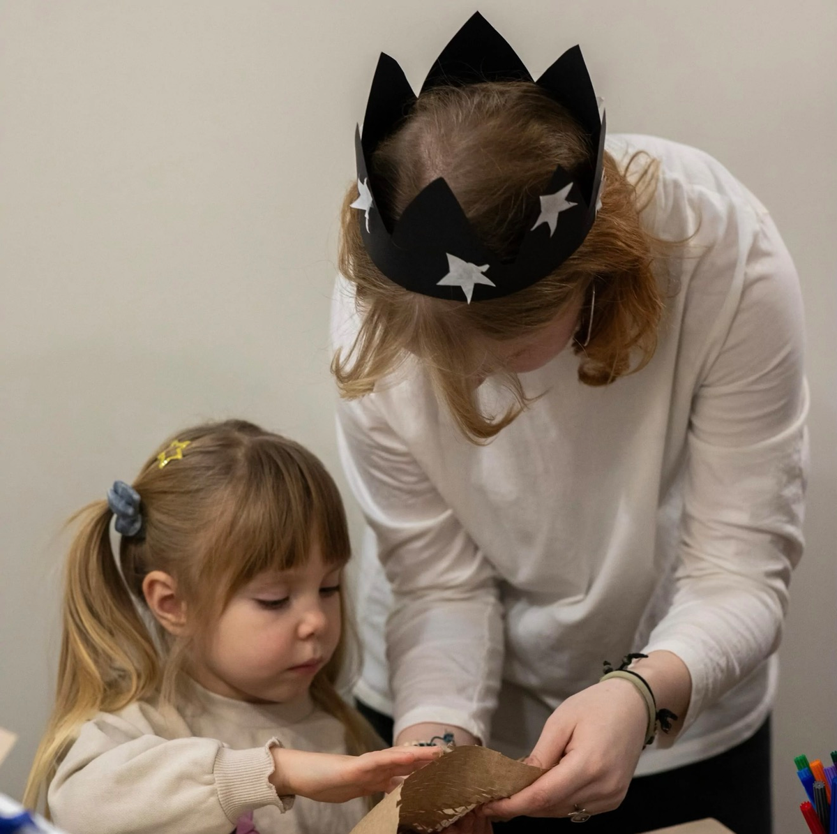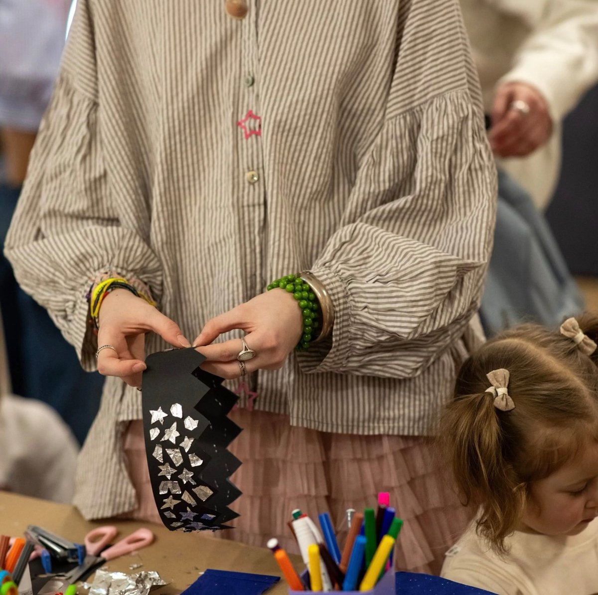 В рамках мастер-классов гости фестиваля создавали головные уборы, аксессуары, короны, воротники, манжеты и бумажные цветы из цветной бумаги ErichKrause Jolly Friends, а также работали над зин-коллажем «Итоги года» и коллажем «Снежники».