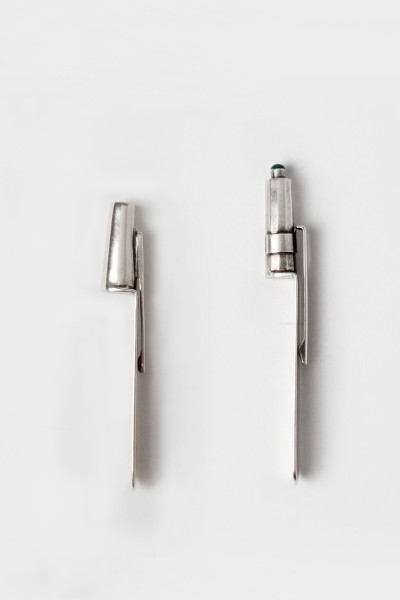 С кем приключалась такая маленькая неприятность, знает, что даже разрекламированному порошку не так-то легко справиться с этими мерзавцами. А вот, если бы на месте злополучной ручки оказалась дизайнерская брошка Pretend Brooch, подобный конфуз ни за что бы ни произошел. Зато выглядит аксессуар точно так же, как реальные канцелярские принадлежности.