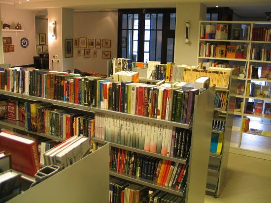 Продавцы устало (видно, что им это приходится делать каждые 5 минут) объясняют, что любую книгу в магазине можно купить за 50 % от указанной на ней цены и что акция продлится 15 дней.