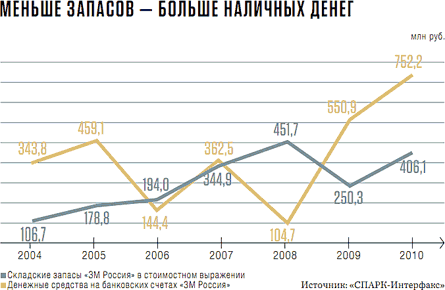 Елизавете Дамианидис, пятому по счету директору по логистике, назначенной в январе 2010 года, удалось побороть этот хаос и снять заклятие с должности главного по поставкам. Сейчас, по данным "ЗМ России", на складе постоянно в наличии 90-95% товаров, оборачиваемость запасов улучшилась (с 35 до 25 дней). Сроки поставок сократились на треть и, главное, стали полностью предсказуемыми.