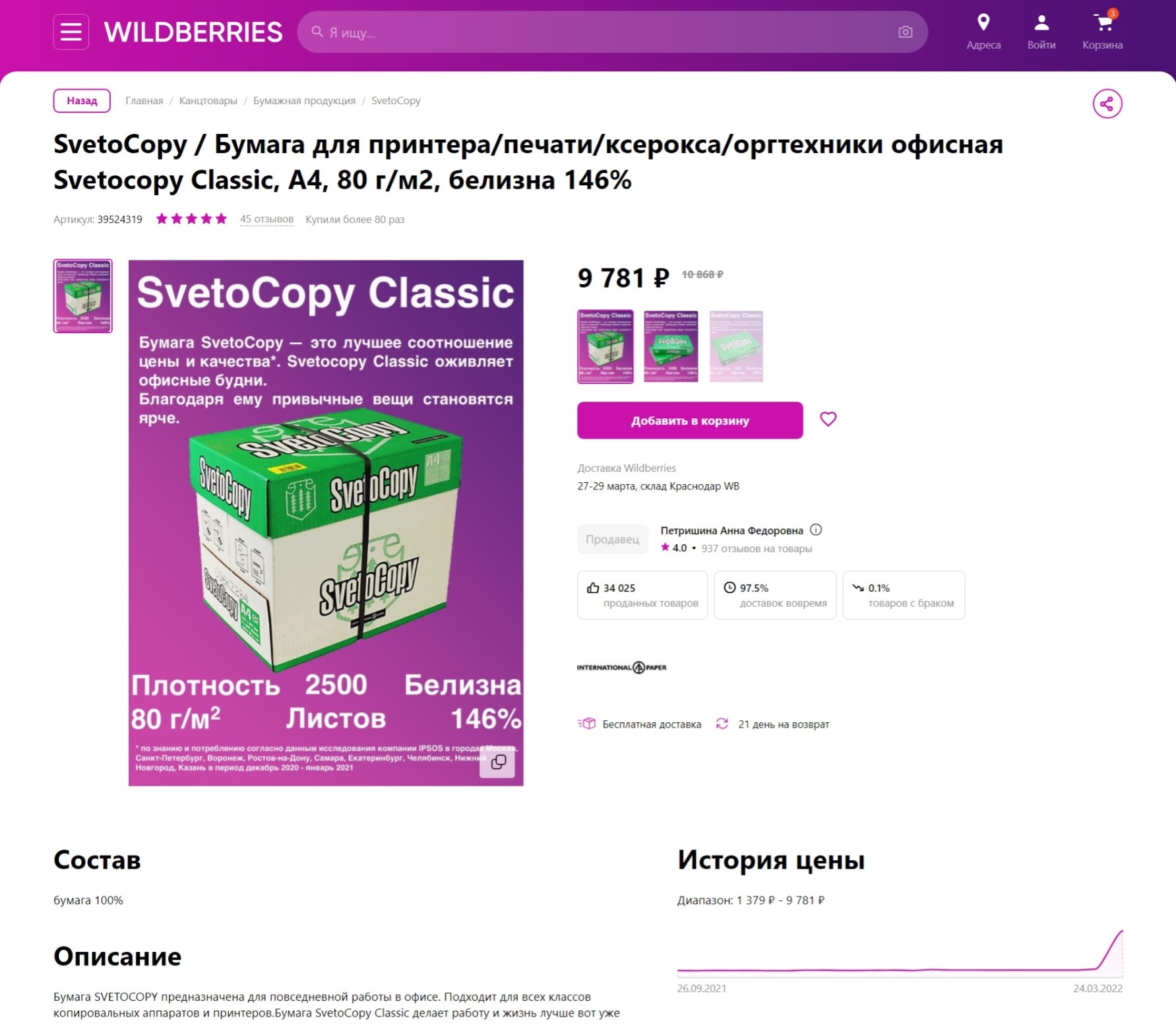 За последнюю неделю жители России столкнулись с дефицитом офисной бумаги для принтеров и резким ростом стоимости этого товара. Пачка листов А4 подорожала в три раза и более. Если в начале марта упаковку бумаги 500 листов можно было купить примерно за 300 рублей, то сейчас её цена варьируется от 500 — если очень повезёт — до 3 000 рублей. Особенно наглядно это видно на маркетплейсах [в качестве примеров представлены самые дешёвые позиции — прим. ред.].
