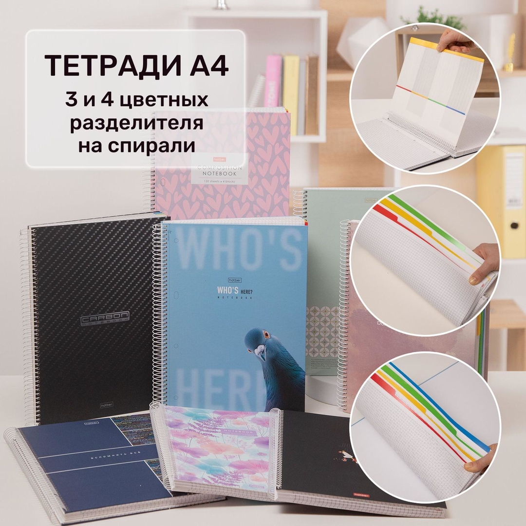 Тетради с 3 и 4 разделителями А4 на спирали от Hatber: большому функционалу —- большой формат!