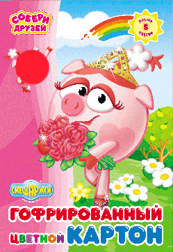 Набор бархатного цветного картона А5, "Смешарики", 5л, 5цв.