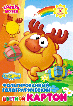 Набор фольгированного голографического цветного картона А4, "Смешарики", 5л, 5цв.