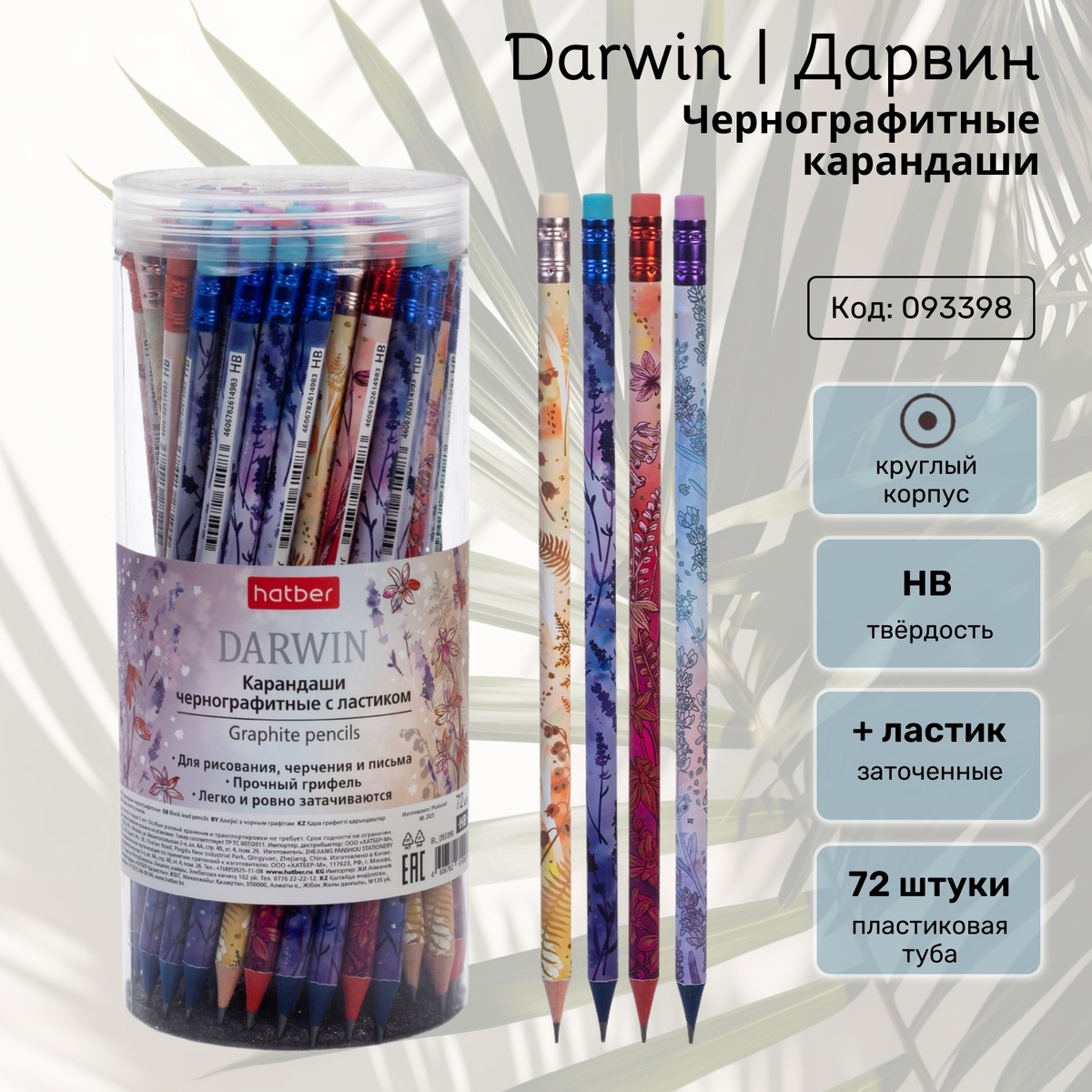 Hatber представляет чернографитные карандаши Darwin (Дарвин) с ластиком. В четырёх дизайнах круглого корпуса эстетика главного фаворита всех художников-пейзажистов.