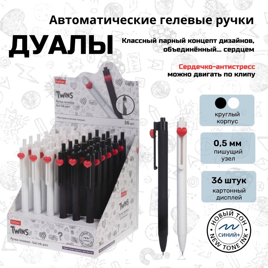 Автоматические гелевые ручки «Дуал» от Hatber — это классный парный концепт дизайнов, объединённый… сердцем.