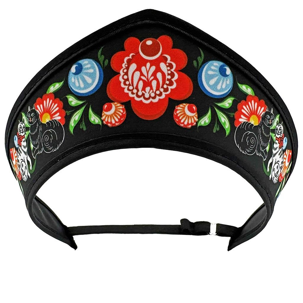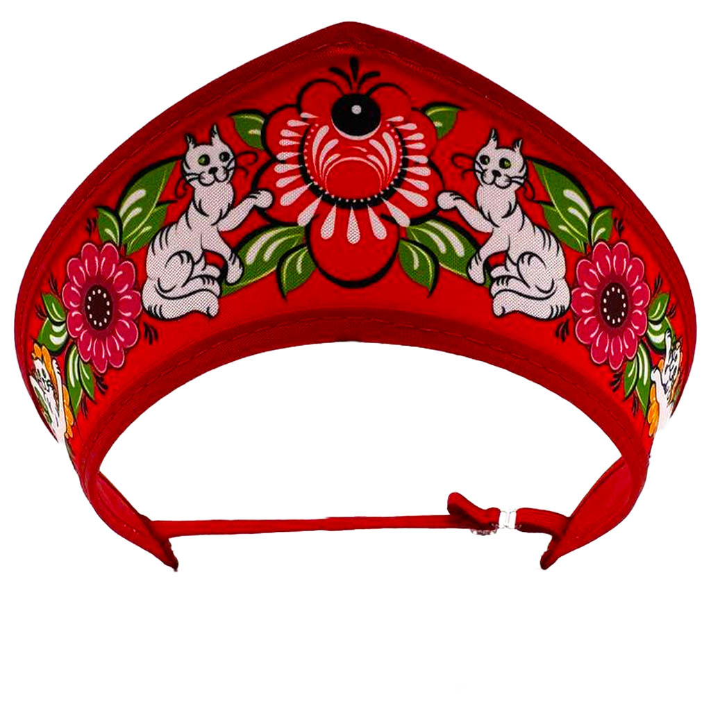 Кокошники выполнены из высококачественного полиэстера. Благодаря пластиковой вставке модели имеют жёсткий каркас, хорошо держат форму. Универсальный размер достигается за счёт регулируемой эластичной резинки. Полноцветная печать изображений обеспечивает надёжность и долговечность рисунка.