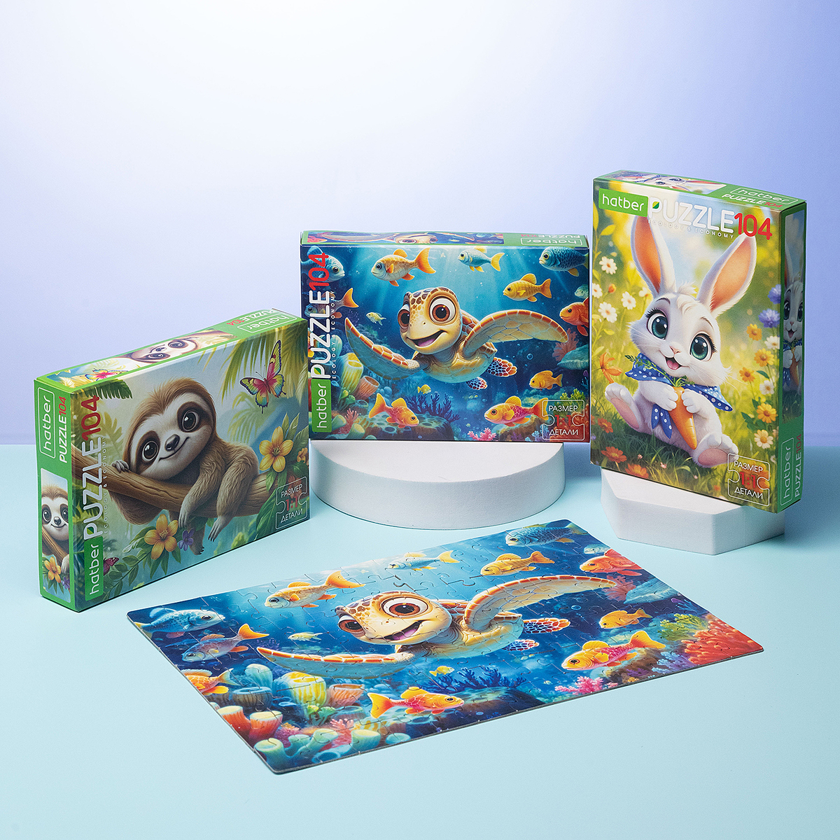 В коллекции детских пазлов Hatber пополнение: сразу три яркие новинки на 104 элемента приглашают малышей в мир добрых историй и фантазий. Все сюжеты выполнены в насыщенных цветах и с крупным размером деталей, чтобы ребёнку было удобно и интересно собирать.