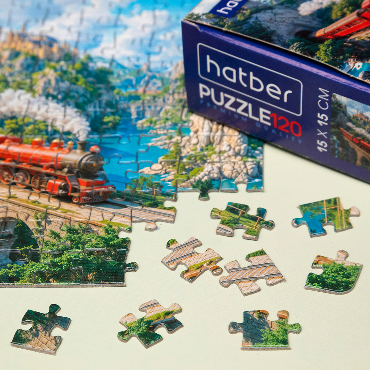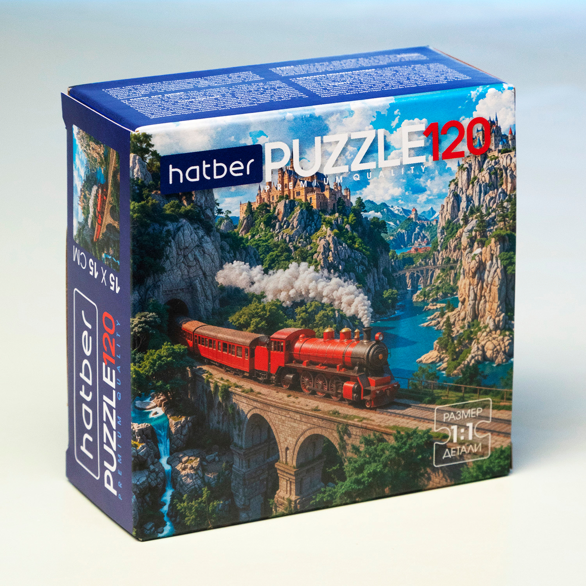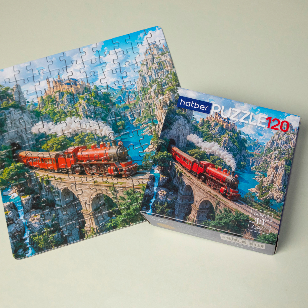По красочному горному маршруту мчится ярко‑красный экспресс, оставляя за собой ощущение настоящего приключения. Это новый пазл Hatber «Красный паровоз» на 120 деталей с эффектным видом поезда на каменном виадуке. Картина сочетает в себе скалы, мост, изумрудные реки и сказочный замок вдалеке, поэтому каждый собранный фрагмент добавляет в кадр либо кусочек архитектуры, либо участок впечатляющего пейзажа.