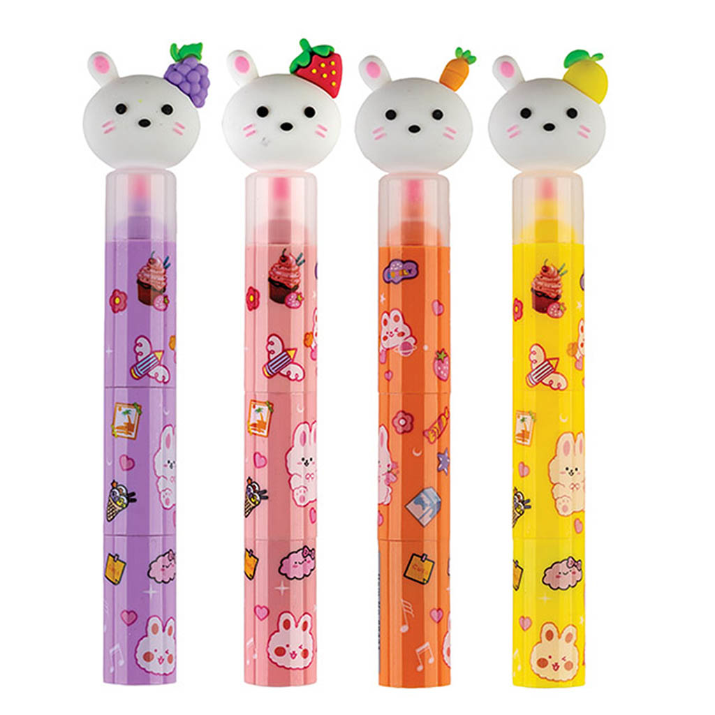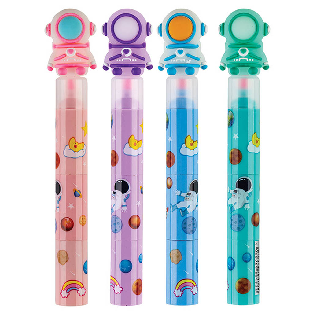 Пластиковый круглый корпус дополнен прорезиненной фигуркой. Маркер состоит из трёх сегментов с разными цветами. Дизайн корпуса в ассортименте.