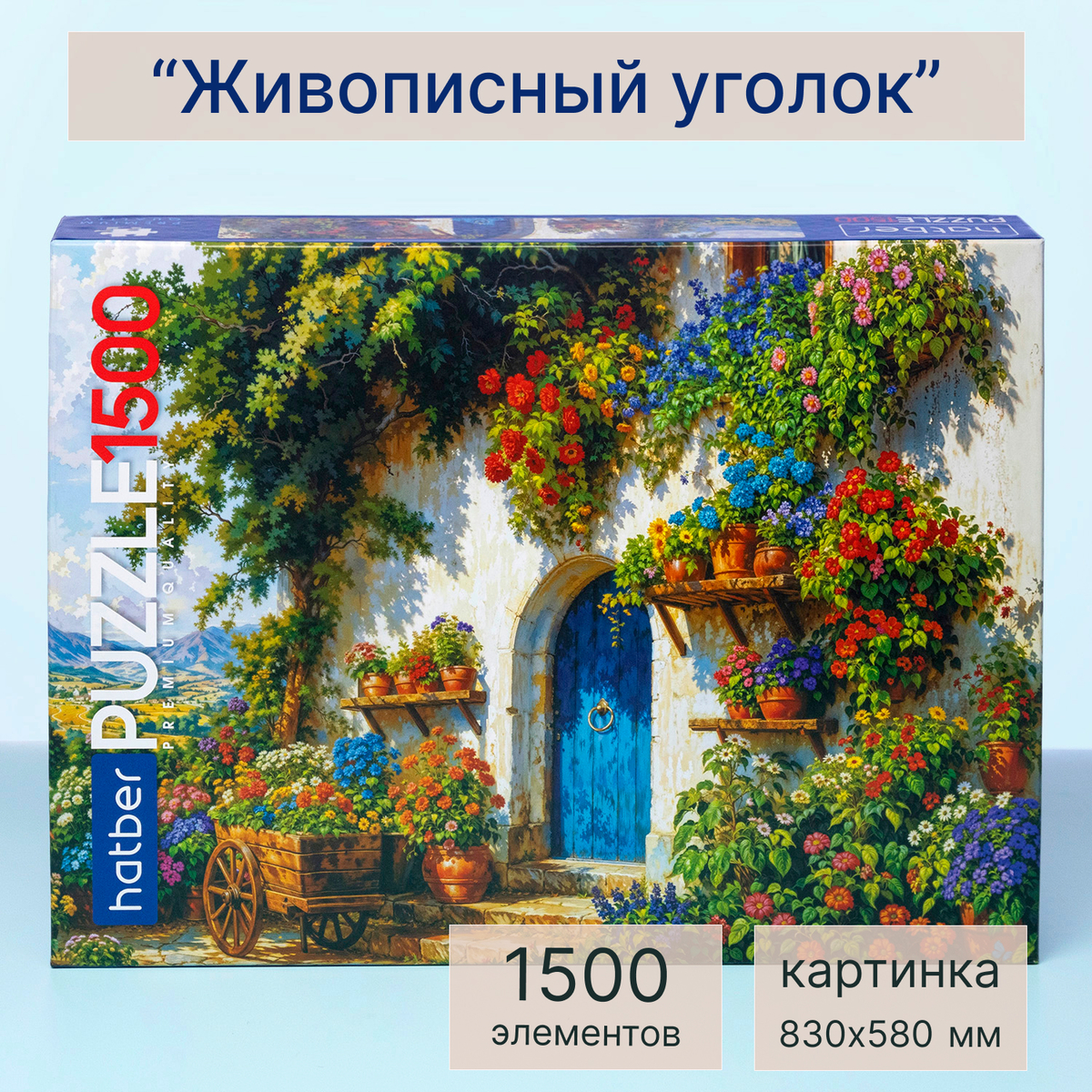 Пазл «Живописный уголок» на 1500 элементов — это приглашение заглянуть в идеальный уголок, где каждый сантиметр залит солнцем. На картине — старинная стена с ярко‑синей дверью, у которой тесно соседствуют деревянная тележка, глиняные горшки и целые каскады цветущих растений, поднимающихся по фасаду и образующих настоящий зелёный водопад.