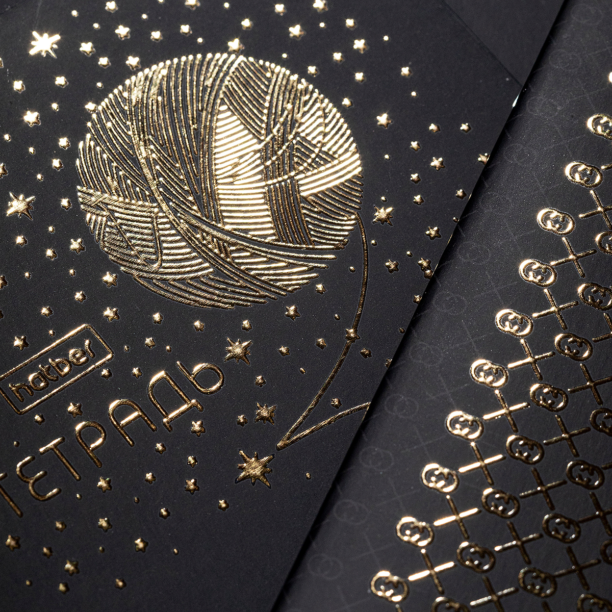 Матовый чёрный фон похож на звёздное небо, где мерцают созвездия и живут котики. Деликатное сияние 3D-фольги задает настроение всей серии.