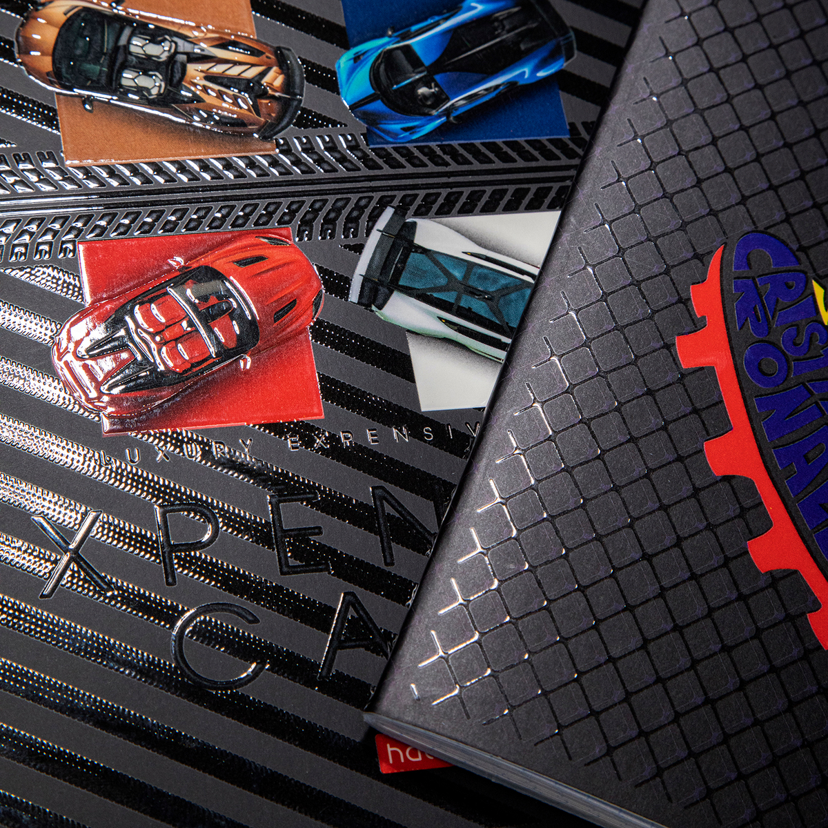 В новых тетрадях «Спорт-шик» Hatber приводит отличные примеры: гонки и футбол. Яркие цвета, особая динамика линий и типографика на каждой обложке.