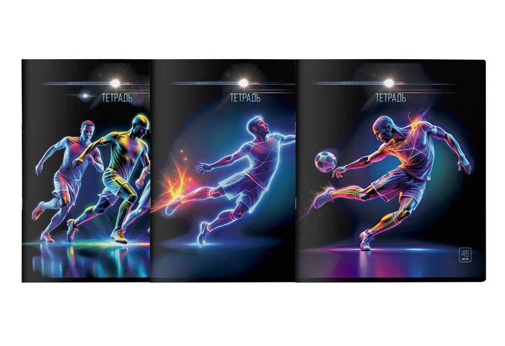 «Футбол» — не просто тетради формата А5+ на 48 листов. Это заряд адреналина и драйва. На обложках — футболисты в движении: рывок, пас, бросок к воротам! Динамика, скорость. Всё, чтобы напомнить: учёба — тоже игра, и в ней можно быть чемпионом.