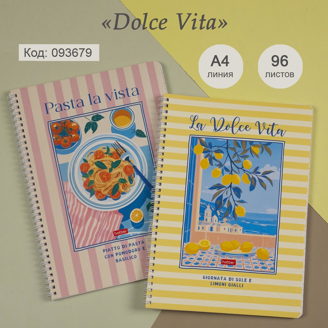 Dolce Vita (линия) — яркие обложки вдохновлены итальянским настроением: аппетитная паста и сочные лимоны дарят ощущение радости и легкости.