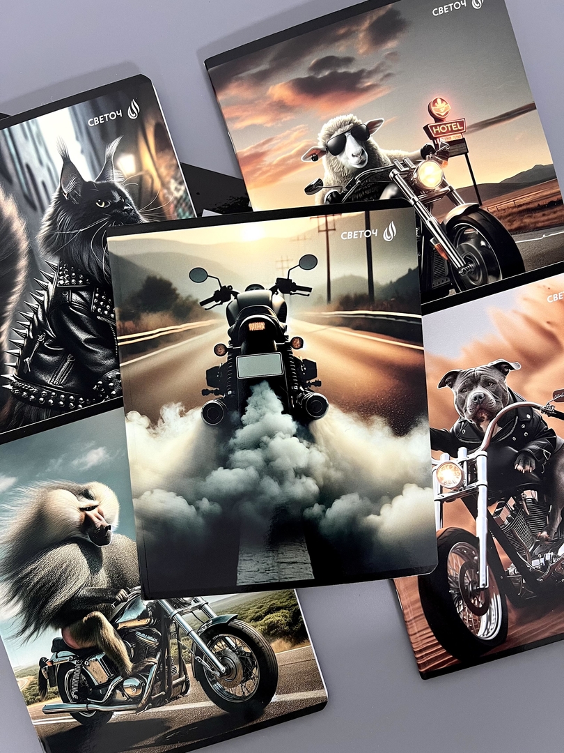 Встречайте новинку — тетрадь А5 «Это кто на мотоцикле?». На обложках байкеры, которые не оставят равнодушным ни одного любителя скорости.