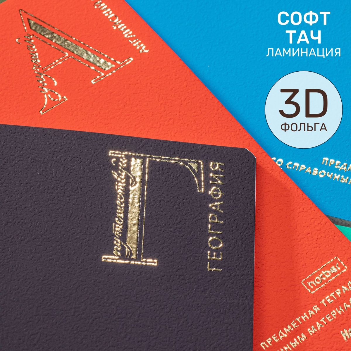 Помимо цвета главный акцент дизайна — буквица, которая является первой буквой в названии предмета. Эта деталь придаёт обложкам приятный книжный дух и отдаёт дань традиционному оформлению книжного текста.