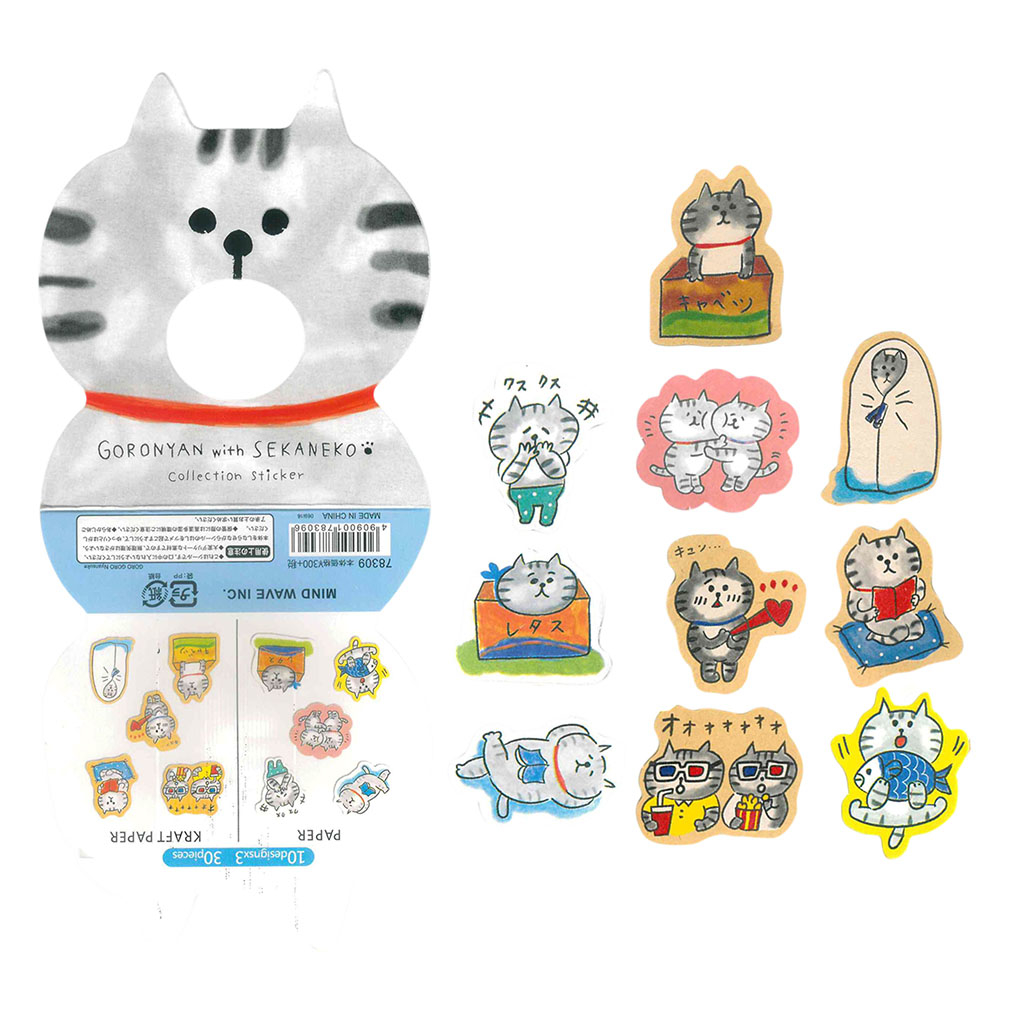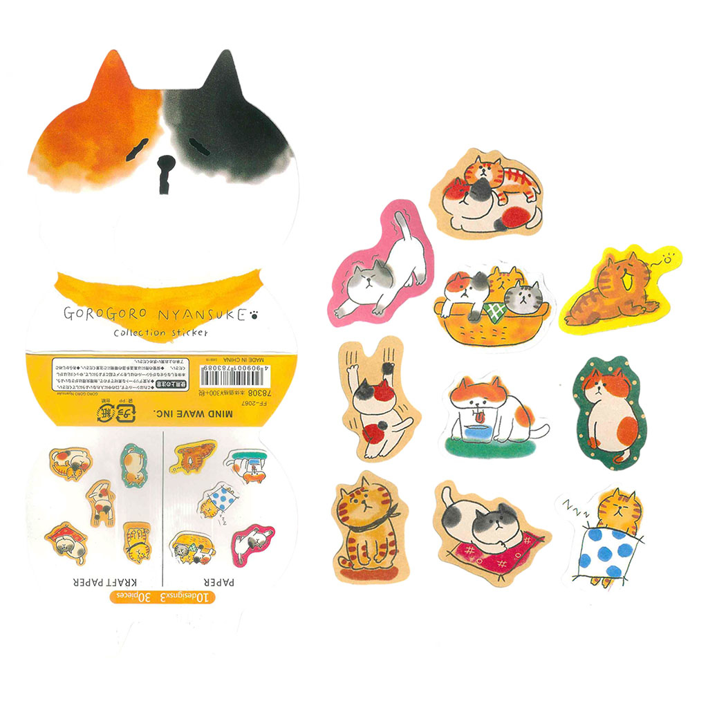 Наклейки упакованы в пакетик и приклеены к упаковке в виде симпатичных кошачьих мордашек.