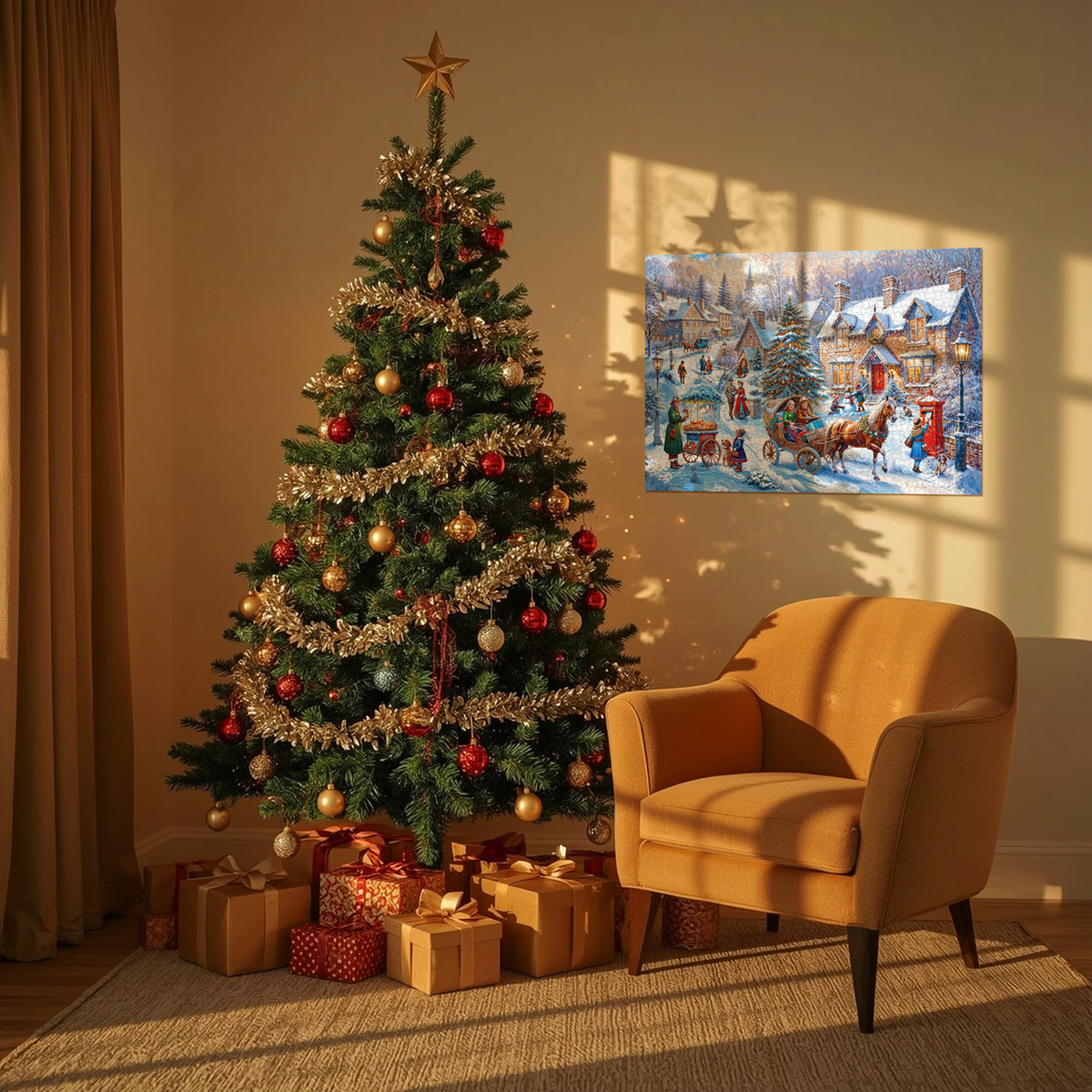 Пазл «Праздничные гулянья» на полторы тысячи элементов переносит в само сердце зимнего праздника, где каждый фрагмент насыщен яркими красками новогодней сказки.