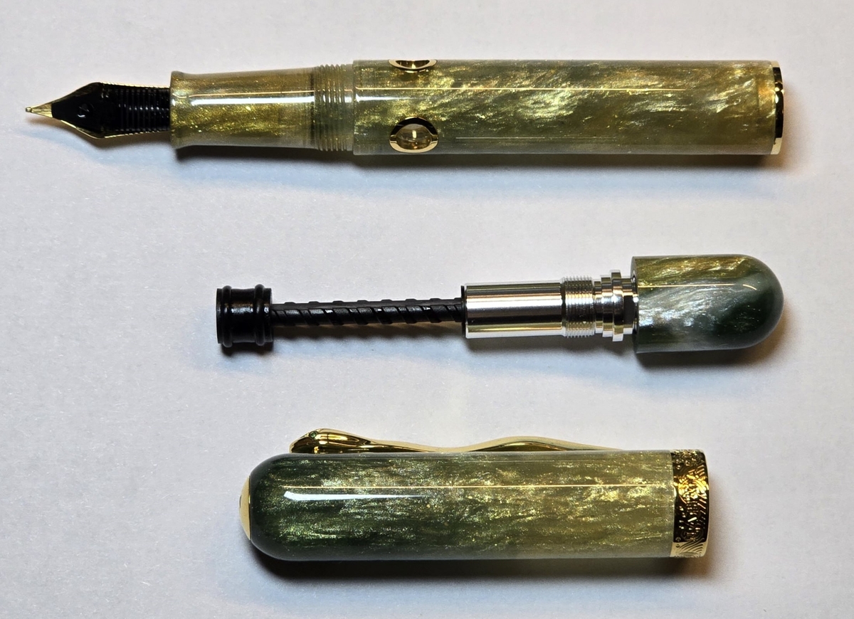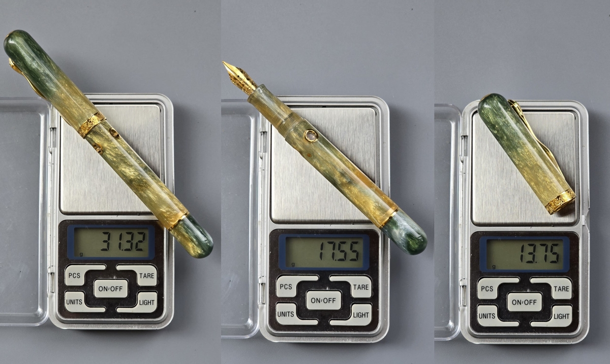 Конструктивно ручка представляет собой прозрачную колбу, вклеенную в акриловый барел. Подобное решение можно встретить у многих производителей: Pelikan, Aurora, Delta и так далее.