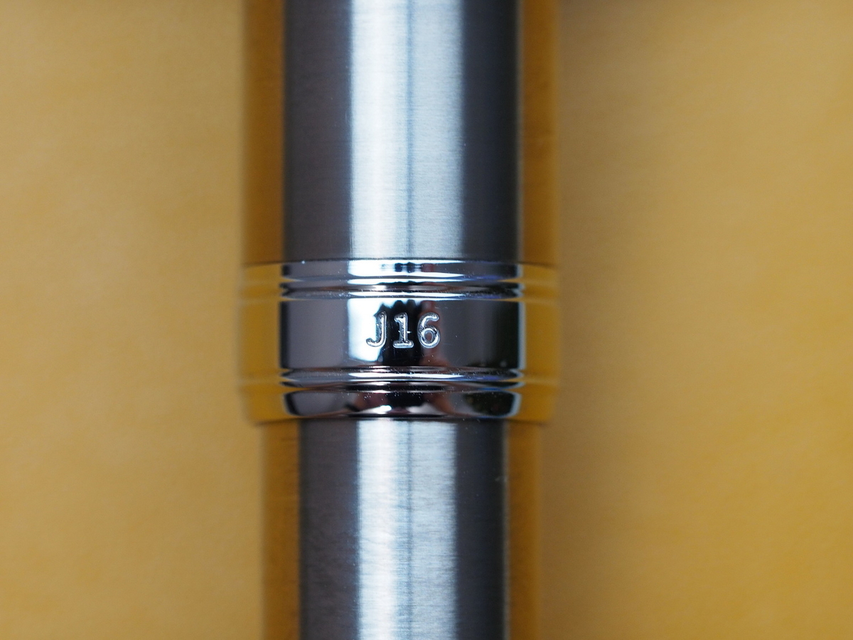 Пожалуй, сейчас самое время выстрелить ружью, повешенному на стену в начале этой публикации. Выше я писал, что ручка блестящая, и это действительно так. Но, когда я её получил, оказалось, что поверхность не отполирована в зеркало, чего больше всего опасался: она сатинированная. Это один из многочисленных способов обработки поверхности металлов специальными абразивными инструментами. В отличие от зеркальной полировки, сатинированная поверхность матовая, но при этом блестящая! Если говорить о тактильных ощущениях, то на ощупь «Джей 16» будто покрыта тысячей микроканавок, издающих характерный звук, если провести по ним ногтем.