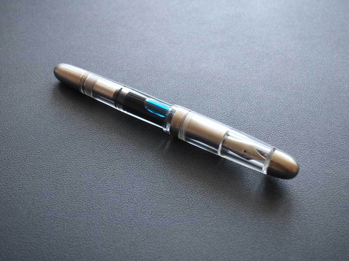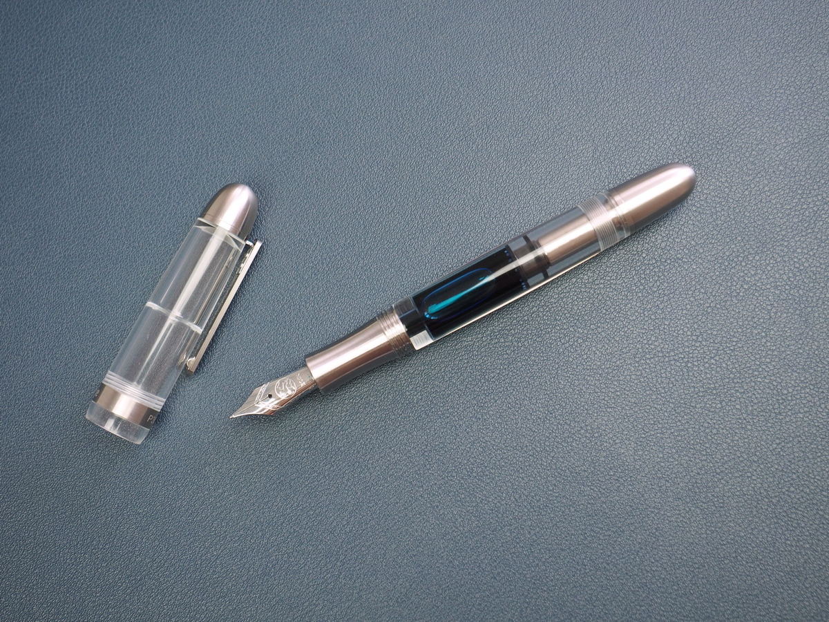 Полагаю, из моего обзора, вы, уважаемые читатели уже поняли, что ручка эта мне очень нравится. Так любимый мной вид корпуса демонстратор в сочетании с титаном смотрится весьма эффектно. А если залить в эту ручку просвечивающие чернила, чтобы можно было наблюдать за их игрой внутри корпуса, будет волшебно. Качество сборки прекрасное, ничего не люфтит, не звенит, нигде нет облоя или заусенцев. Моя ручка, оснащённая пером компании Peter Bock #6, начала писать сразу из коробки, едва я её заправил и не доставляла мне никаких проблем на всём своём жизненном пути.