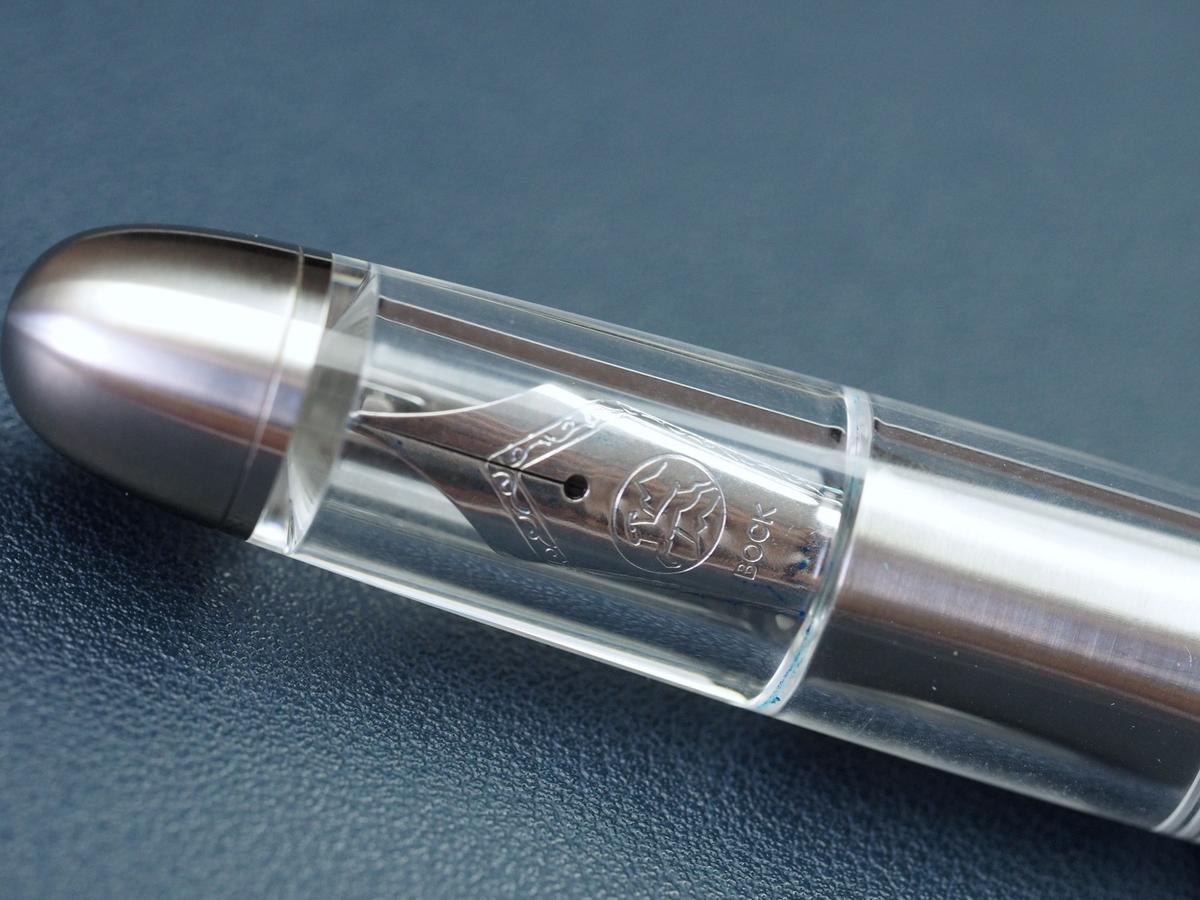 Как я уже писал выше, корпус этой перьевой ручки выполнен в формате демонстратора, где все её пластиковые части изготовлены из прозрачного акрила, а фурнитура, грип-секция и торцы — из титана.