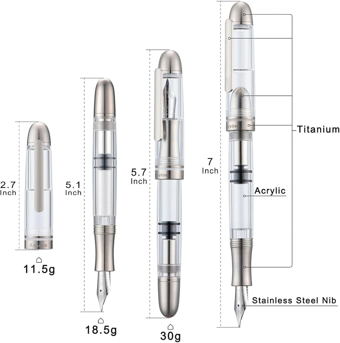 Физические размеры перьевой ручки Asvine P36 Titanium aka спецификация