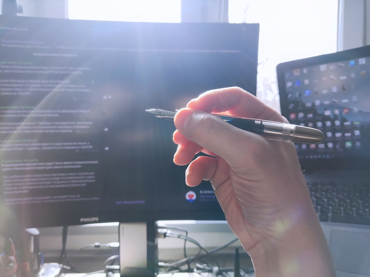 Она пережила четыре перелёта и не протекла чернилами в колпачок, как этим до сих пор грешат некоторые даже именитые собратья. Да что там, не все люди благополучно переживают перелёт, не зря же для них придумали бумажные пакетики. Конечно, перед полётами я заправлял её всклянь, а когда не было такой возможности, стравливал воздух из ёмкости с помощью поршня, раскручивая его. В результате такой подготовки ручка вела себя как первоклассник, впервые получивший двойку: была тише воды ниже травы и не беспокоила меня.