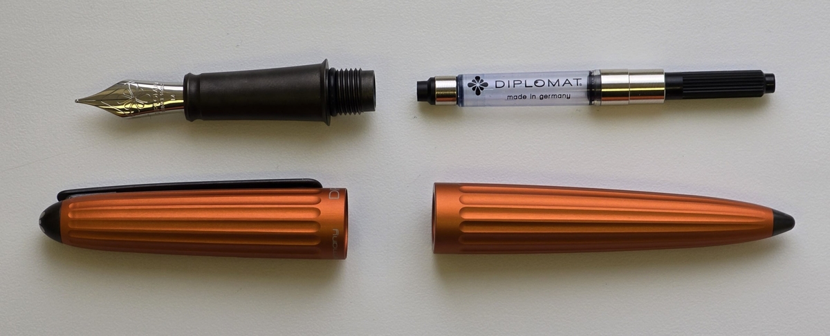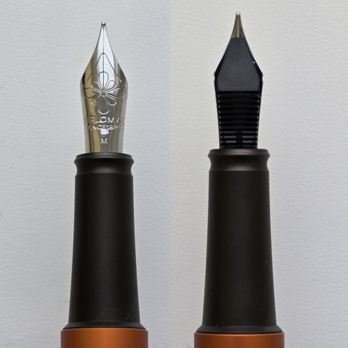 Достоверно установить, кто производит перья для Diplomat Aero, мне не удалось. По геометрии и конструкции фидера не похожи ни на один референс.